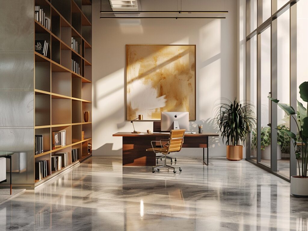 Proste biurka i ergonomiczne krzesła w stylu nowoczesnym zwiększają produktywność, tworząc przyjazne środowisko pracy.