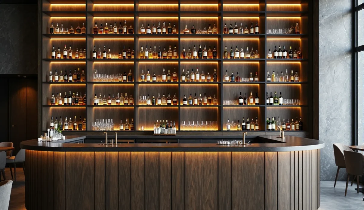Styl regałów powinien być spójny z ogólnym wystrojem baru hotelowego. Oto kilka przykładów: