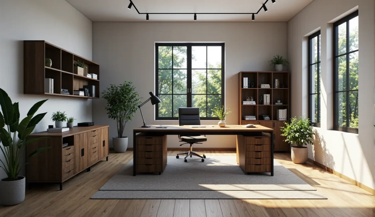 • Rośliny: Umieść rośliny w biurze. Rośliny poprawiają jakość powietrza, redukują stres i dodają życia przestrzeni.