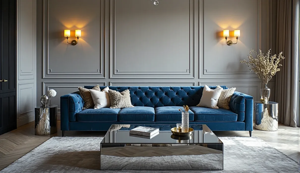 - Sofa Chesterfield: Kultowa sofa z pikowanym obiciem, idealna do salonu w stylu glamour.